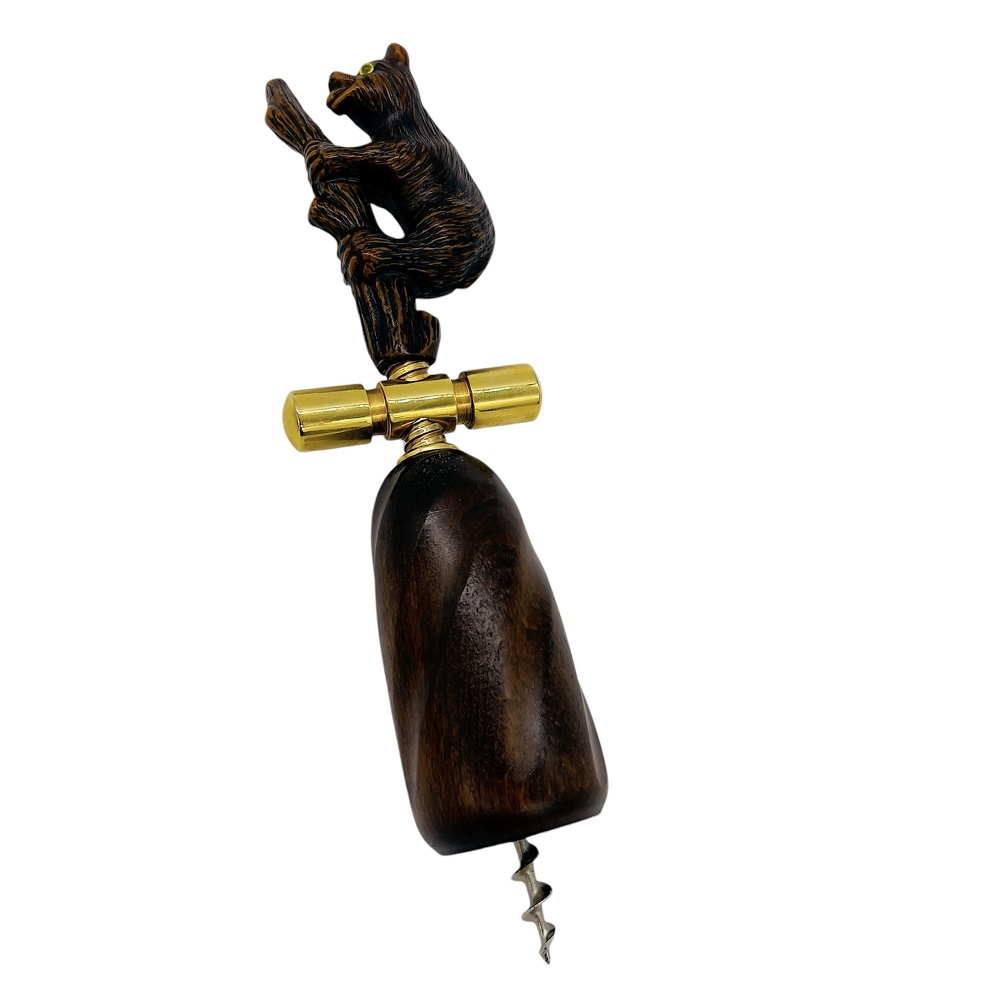 Штопор из натурального дерева с изображением медведя.