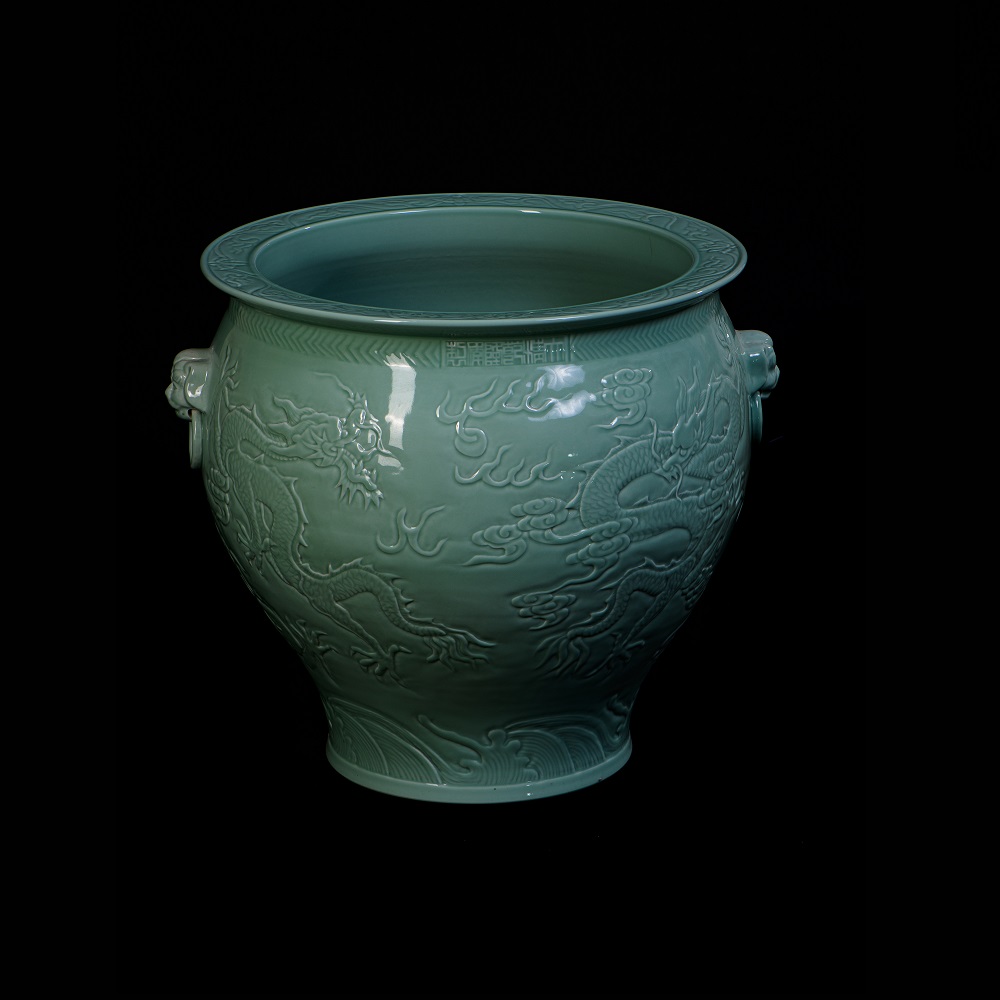 Большая напольная ваза-кашпо обладает массивными размерами, что делает её идеальным акцентом для просторных помещений или центральным элементом декора.