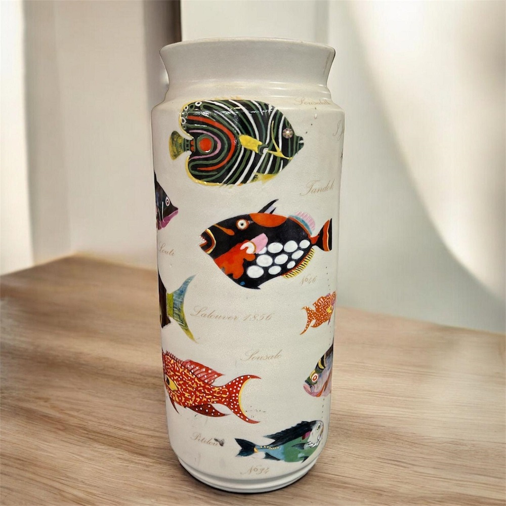 Стаи рыб на белом фоне украшают эту вазу и создают художественный образ. Ваза создана с исключительным вкусом, чётко прорисована каждая деталь.