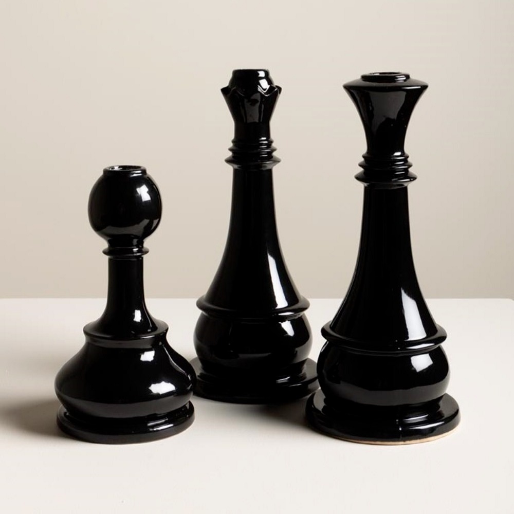 Этот подсвечник выполнен в форме шахматной фигуры — Короля. Он изготовлен из керамики с высокой степенью полировки. В верхней части имеется стандартное отверстие для установки свечи. Такой подсвечник станет необычным и элегантным акцентом в интерьере, придавая ему нотки интеллектуальности и стиля.