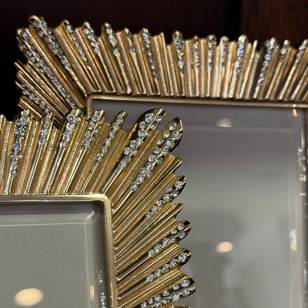 От снимка, помещённого в такую рамку, кажется, действительно должны исходить лучики тёплых и светлых эмоций, ведь он наверняка будет напоминать о значимых событиях или любимых людях. Изящная фоторамка украшена настоящими кристаллами в огранке Swarovski и позолочена. Она станет прекрасным подарком к любому празднику и позволит вдоволь наслаждаться дорогими сердцу воспоминаниями. Размер фотографии: 13х18 см