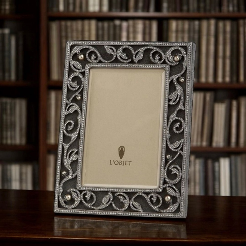 Что для нас фотография? Лишь цветной кусочек бумаги? Или же напоминание о каком-то ярком, счастливом и значимом событии нашей жизни, которое хочется подольше сохранить в своей памяти? Любая фотография дорога нам тем, что возвращает нас во время, которое нам уже никогда не удастся пережить заново. Наружную сторону обитой замшей рамки украшает изысканный орнамент из покрытой платиной меди с жемчужинками и множеством кристаллов в огранке Swarovski. Поместите любимую фотографию в эту рамку, и она украсит ваш дом! Размер фотографии: 20х25 см