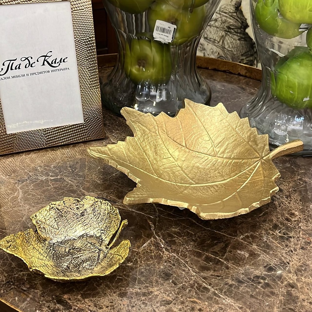 Чаша лист кленовый – это стильное решение для декора дома и хранения мелких вещей, например, ювелирных украшений, ключей или мелких денег. Праздничное тёплое настроение, благодаря золотому цвету чаши Вам обеспечено!