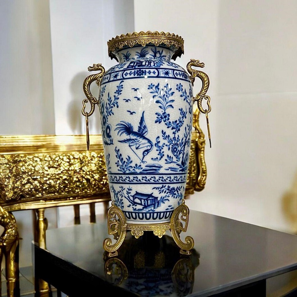 Шикарная ваза в китайском стиле. Росписи в этой стилистике широко известны и пользуются заслуженной популярностью. Отлично сочетается с золотом, будет одинаково хорошо смотреться как в классическом, так и в современном интерьерах.