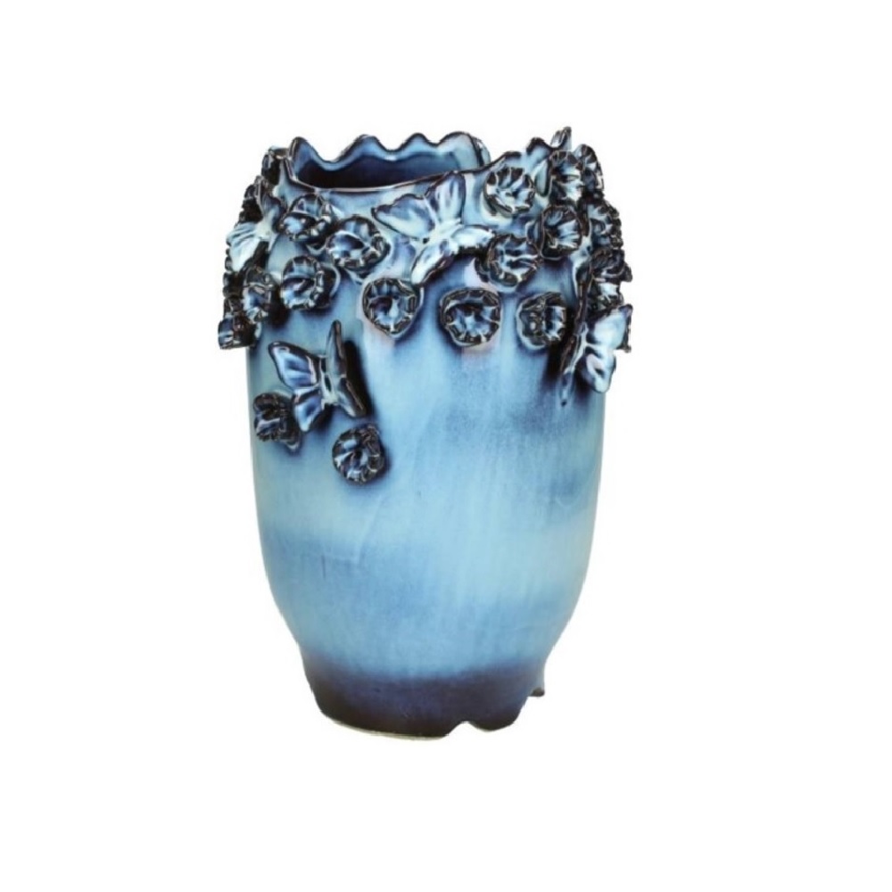 Декоративная ваза с бабочками - не только украшение интерьера. Она может служить по прямому назначению: для цветов под срезку или для букета из искусственных цветов. Настольная.