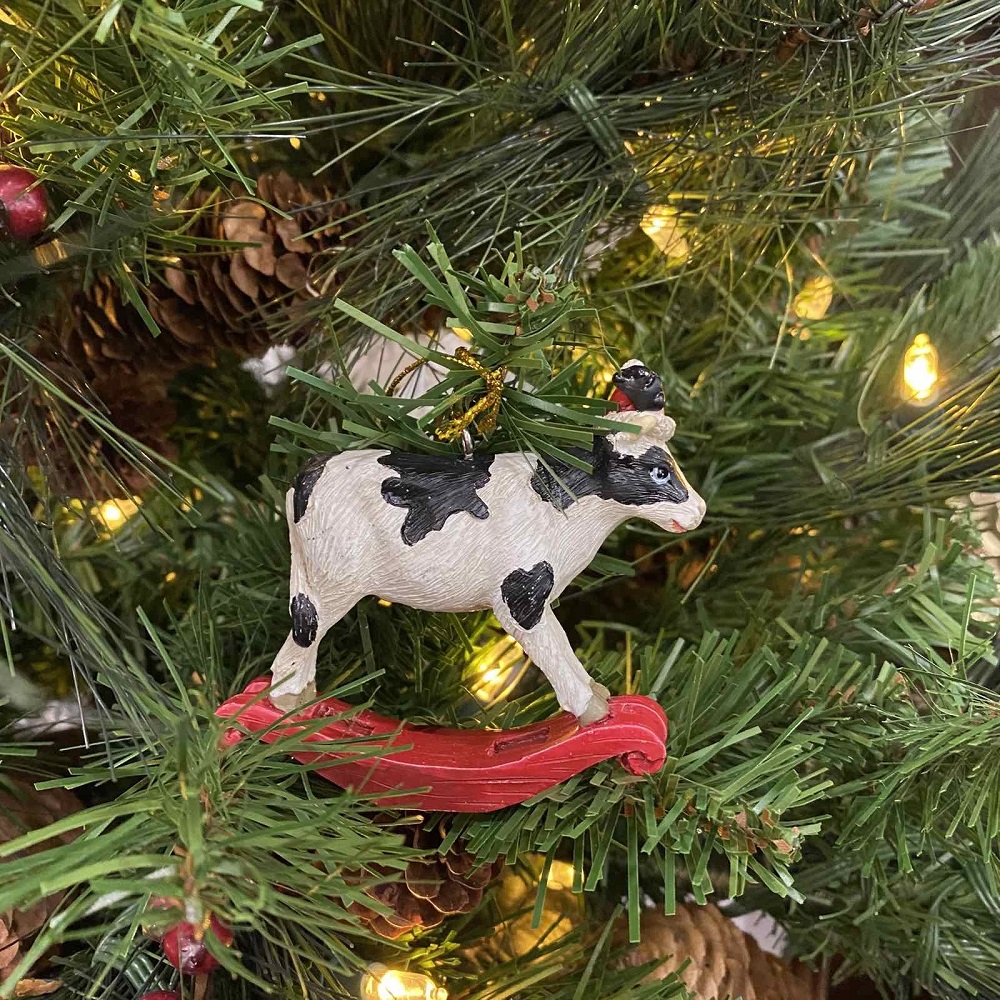 Спокойной, добродушной и уютной коровке в праздник хочется тоже немного почудить! Ну, совсем чуть-чуть, чтобы и Вас позабавить и самой повеселиться! Вот, например -изобразить из себя лошадь-качалку или на лыжах постоять! Нет-нет, ехать не надо, вот постоять - самое то!