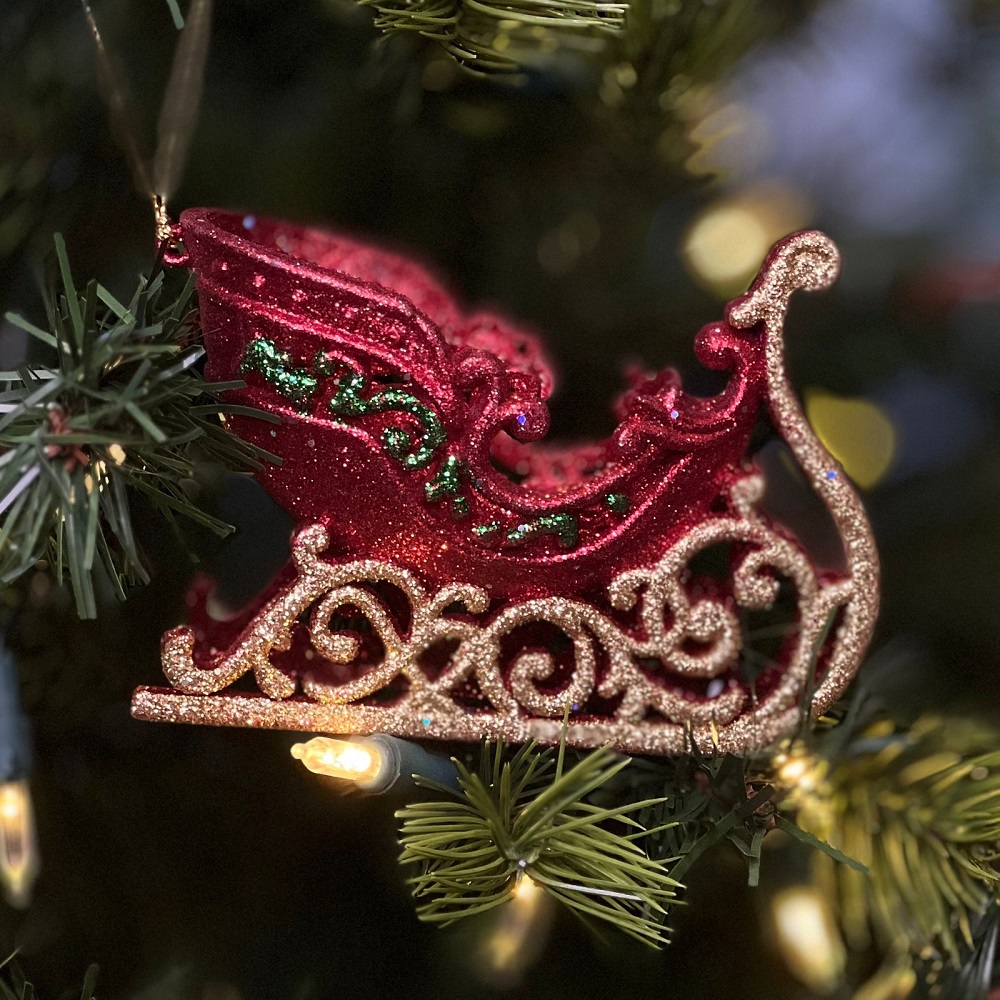 Волшебные Сани Деда Мороза и его помощников станут прекрасным украшением к Новому году. Одинаково удачно будут смотреться на ёлке или в интерьере комнаты. Объёмная фигурка усыпана красными, золотыми и зелёными блестками.